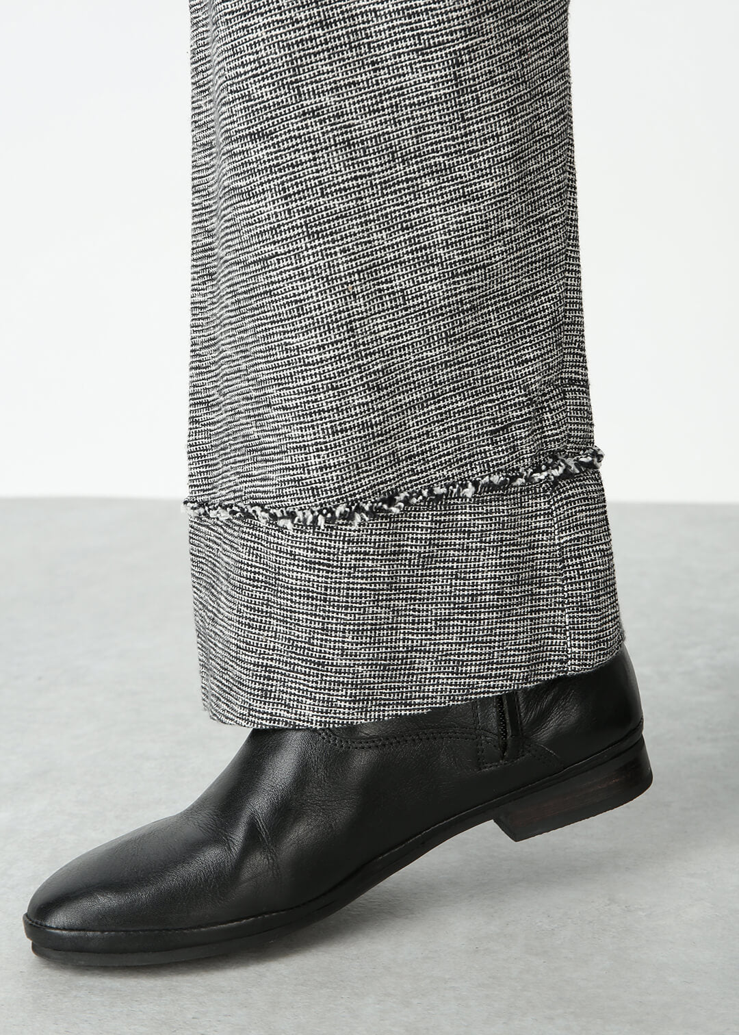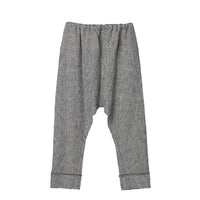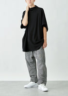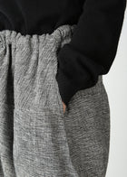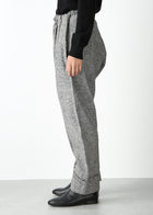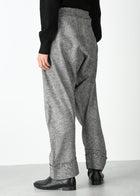 そのために、裾に太めの折り返しを作り、股より下のラインにおいてはストレートな状態を作っていて、そうしたディテールで民族性と現代性のミックス感覚を着るひとに与えるユニセックスパンツなのです。