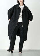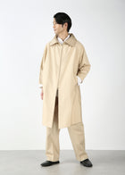 上品な光沢感とハリのあるチノ素材で仕立てた、ユニセックスのオープンカラーコートです。