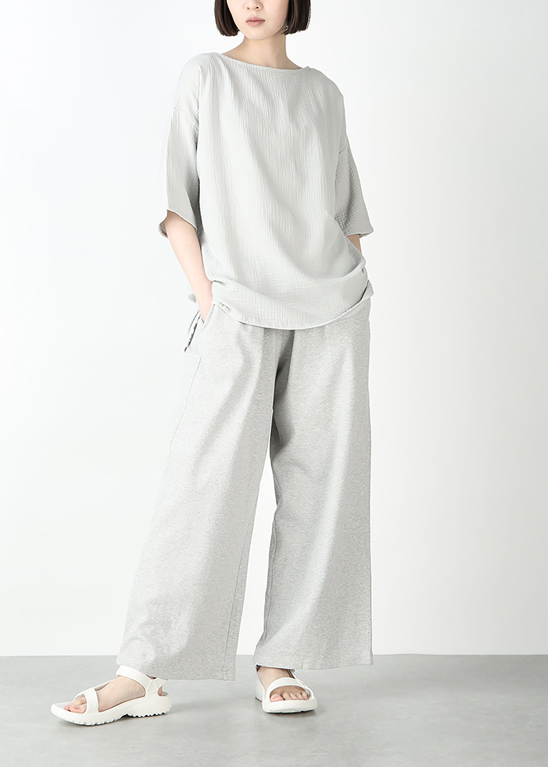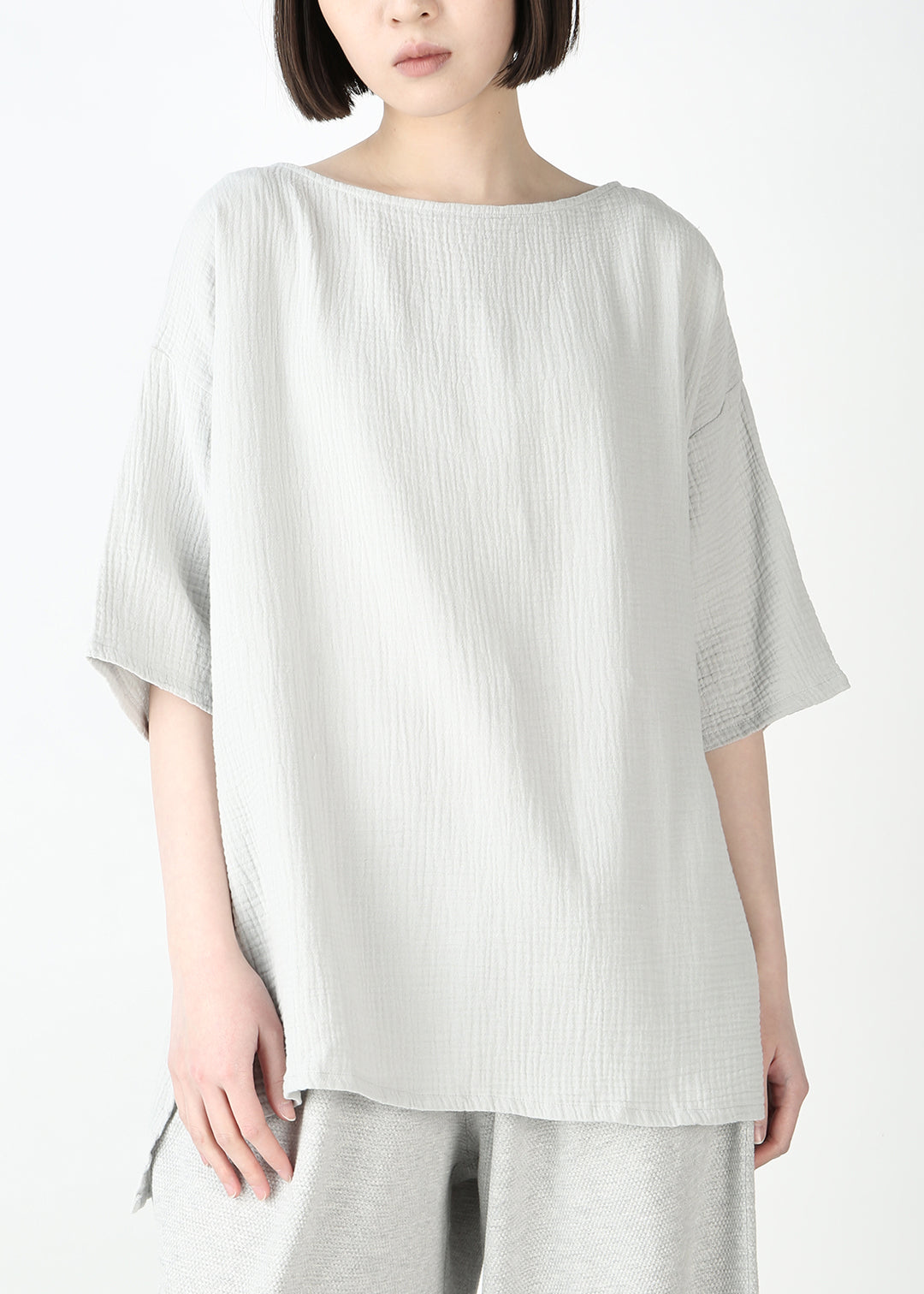 このトップスは、ガーゼの普遍的な良さを多くの人に実感してもらいたいと思い、2サイズに分けてご用意しました。
