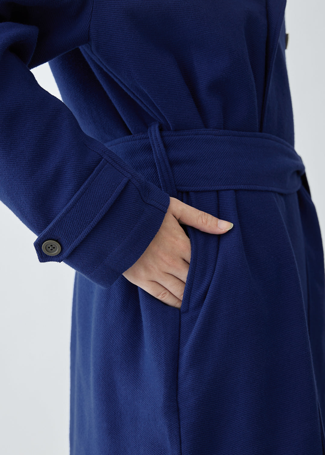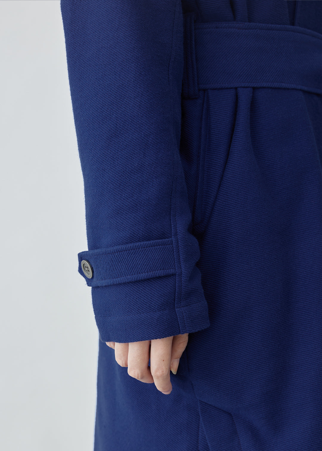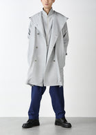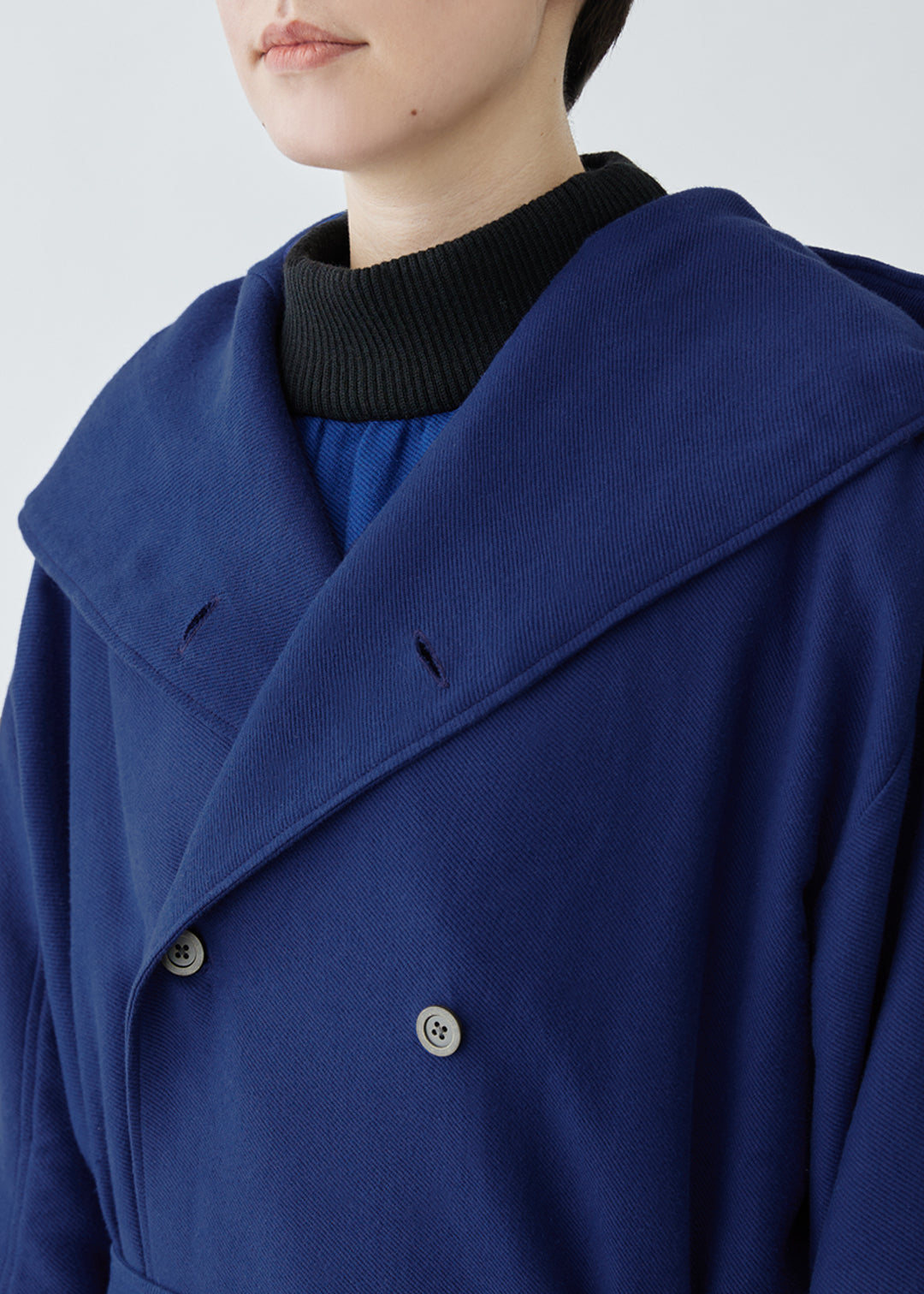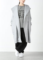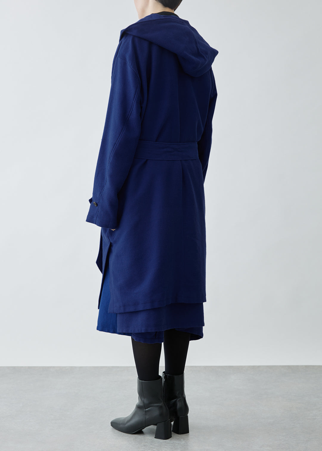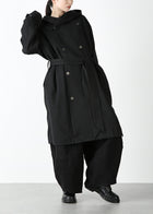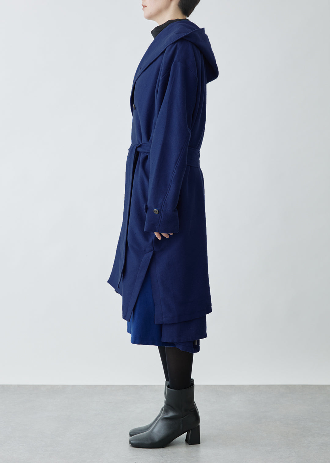 大きめのフードが存在感のあるユニセックスのコートです。 程よいビッグシルエットとショールカラーが絶妙な抜け感を演出。 しなやかで落ち感のある生地は羽織るだけで様になる他、ボタンの開け閉めを変えたり、共布の紐でウエストマークするなど、その日の気分に合わせて着方の変化をお楽しみいただけます。 ワンピースやスカートと合わせて上品なスタイルはもちろん、パンツと合わせてモードな印象で着用いただくのもおすすめです。