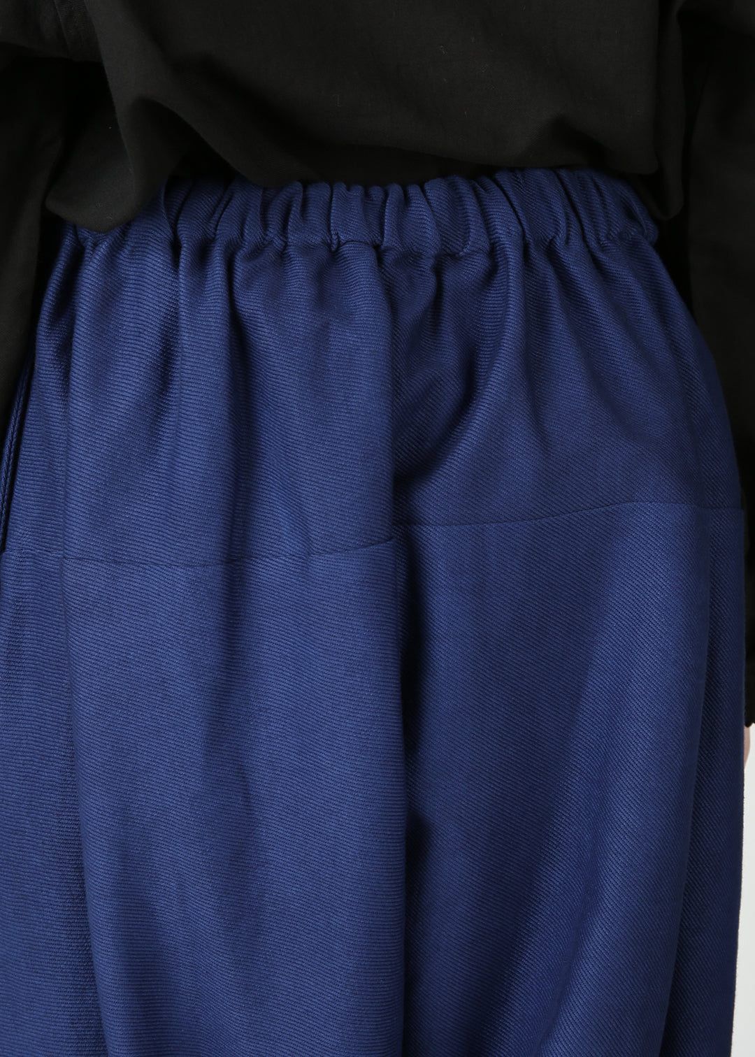 ウエストから股下のデザインはゆとりを持たせつつ、裾にかけてはストレートに仕立てることですっきりとした印象に仕立てました。