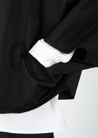 左右が完全に非対称でありながら、着ると一つの作品のように完成する。