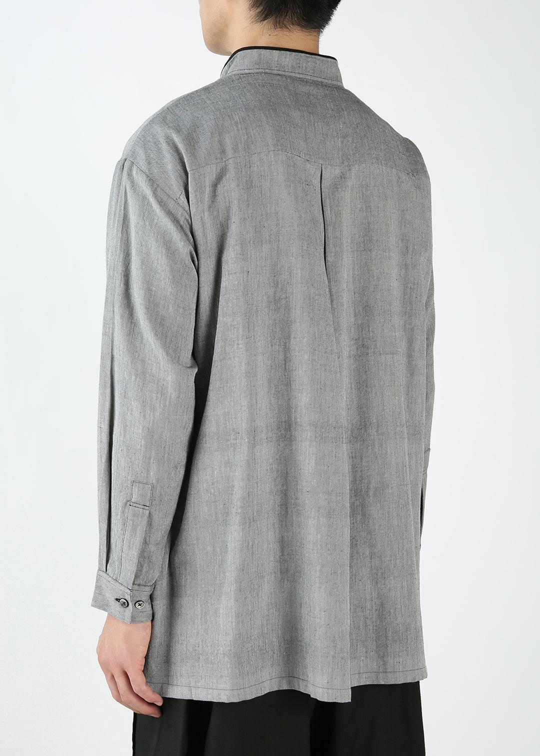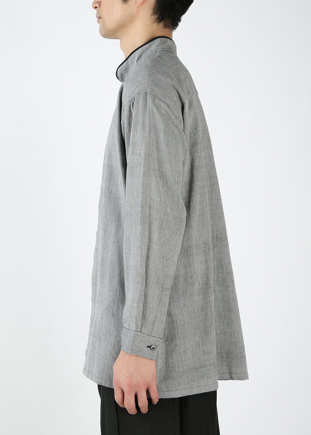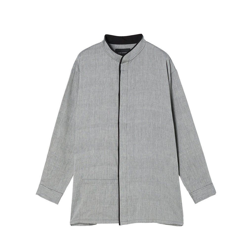 モノトーンの風合いあるやわらかなシャンブレー生地で仕立てた、ユニセックスのシャツです。