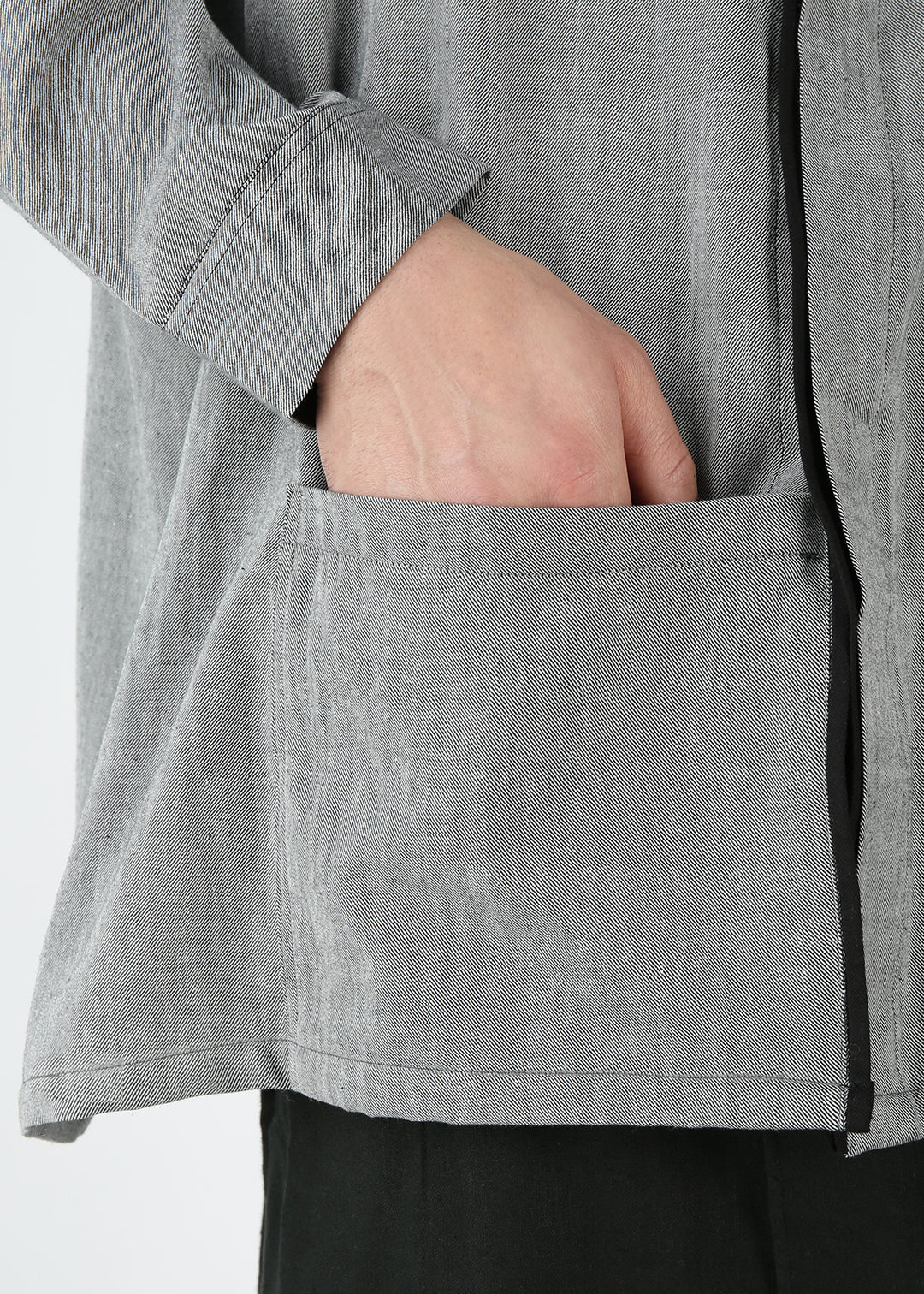 程よいゆとりがありながら、前立ての比翼仕立てとIラインのシルエットがすっきりとした印象に。