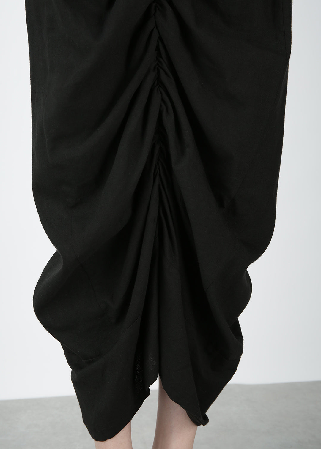 モノトーンの色合いに、ハリと光沢感のあるカディリネン生地は、シンプルでありながらモードな印象を際立たせるのも魅力的なポイント。