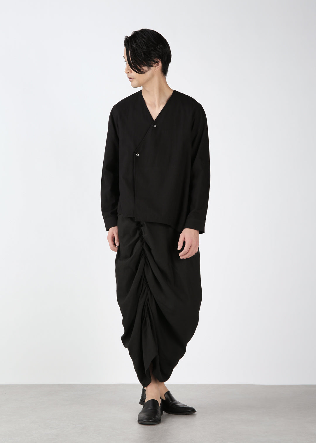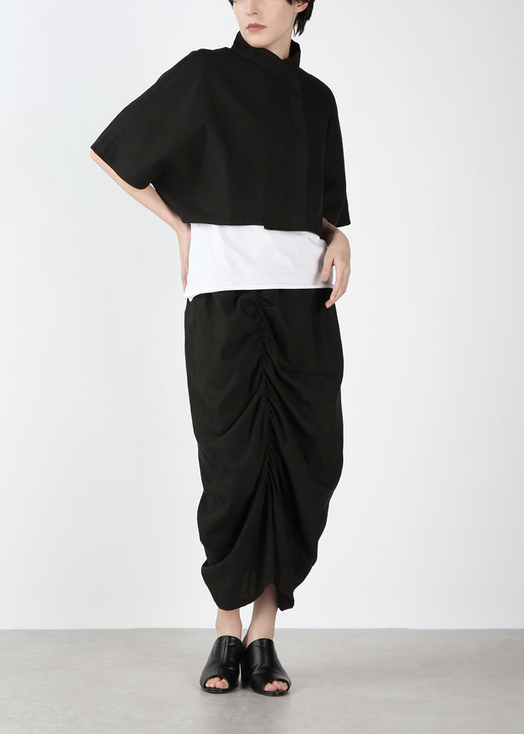すっきりとしたIラインのシルエットながらも動きやすく、シャーリングが個性を添えるユニークな一着に。 気分にあわせてシャーリング位置を変えることで、印象に変化をつけて着用いただけます。