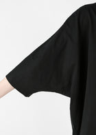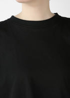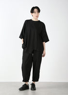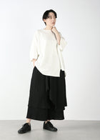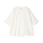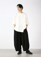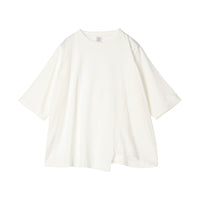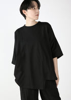 身体のラインを拾わない絶妙なボリューム感と裾のさりげないアシンメトリーのデザインが、着るだけでこなれ感をそえるアイテムに。 ドルマン型のシルエットがリラックス感を引き立てつつ、衿のリブが全体の印象を引き締める一着です。