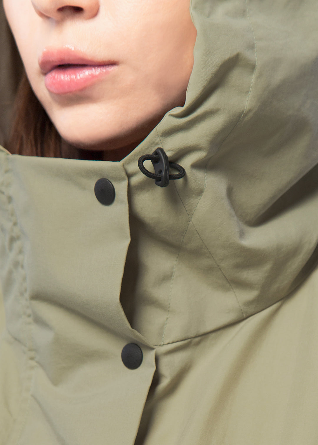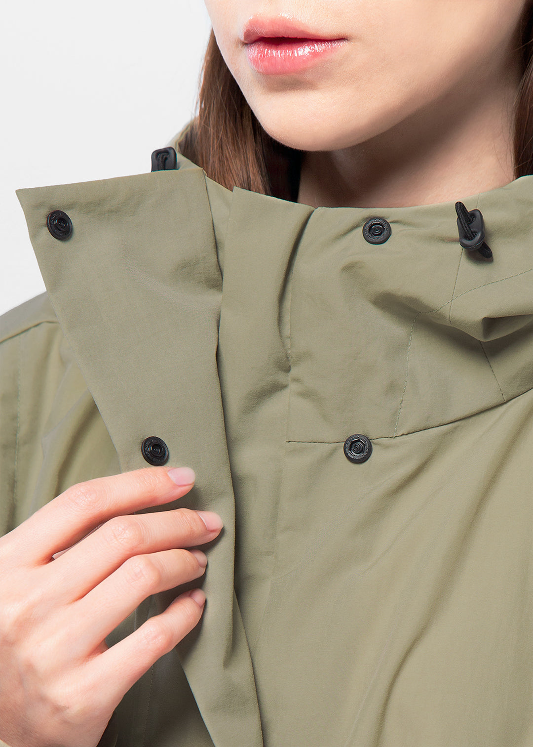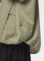 ウィンドブレーカーには、自然な光沢感とナチュラルな風合いのナイロン生地を使用しています。適度なハリ感のある軽やかな素材のため、動きやすく持ち運びやすいのも特徴。ご自宅での手洗いでのお手入れが対応可能です。