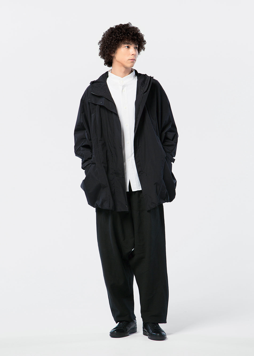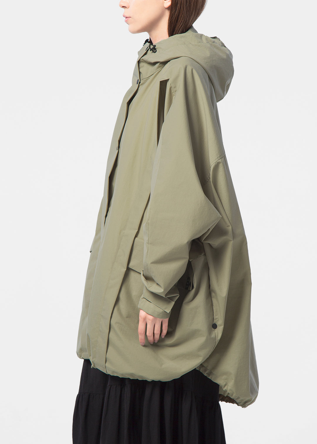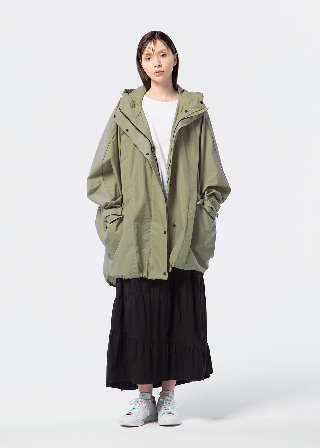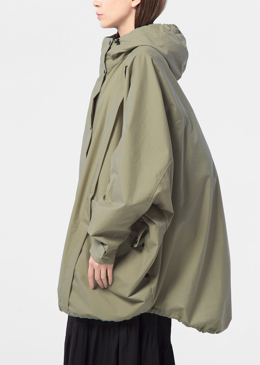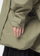 ゆとりのあるシルエットはパンツと合わせてもカジュアルになりすぎず、スマートな印象に。スカートでもバランスよく着用できます。雨の日はもちろん、晴れの日も羽織るだけでさまになる一着に仕上げました。
