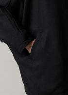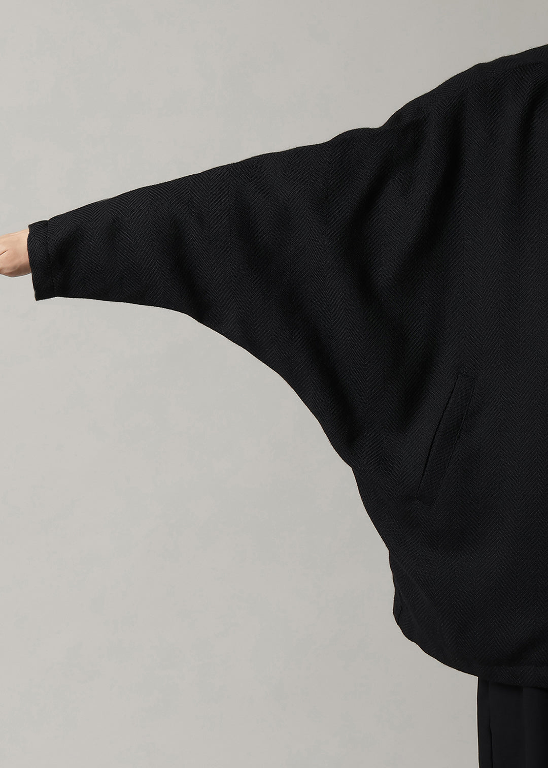 袖のドルマン仕立てに、ゆとりのある腰丈のシルエットが、リラックス感がありながら、中にニットを着こんでもすっきりと着用いただけます。