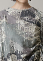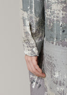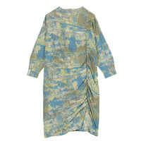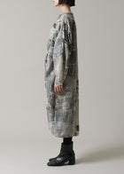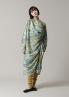 幾何学的なスクリーンプリントが目を惹く、柔らかなウール生地で仕立てたワンピースです。 生地を贅沢に使用した身頃のシャーリングのデザインが、シンプルでありながら、着るだけでスタイリングに個性とこなれ感をそえる一着。 スッキリと着こなせるIラインシルエットに、シャーリングによって生まれるスリットが、抜け感をそえつつメリハリのあるシルエットをつくります。 着るだけでこなれ感をそえるワンピースは一枚着はもちろん、細身のパンツと合わせたレイヤードスタイルでもおすすめです。