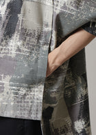 幾何学的なスクリーンプリントが目を惹く、柔らかなウール生地で仕立てたユニセックスのシャツです。