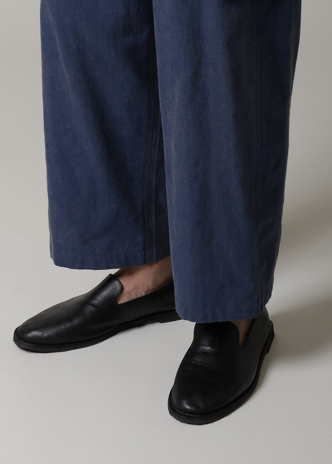 56番手のカディ糸を2本取りで平織りにした生地に洗い加工を施して、ビンテージ感のある風合いを生み出しました。程よい厚みがありながらも柔らかく、表情豊かな仕上がりとなっています。