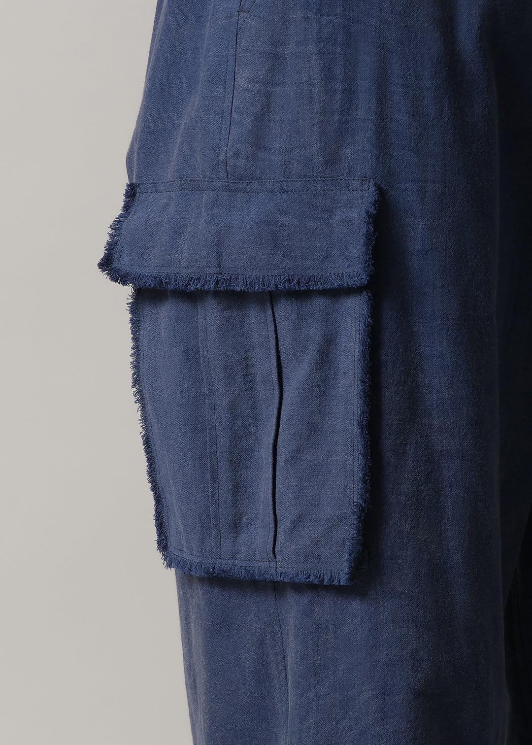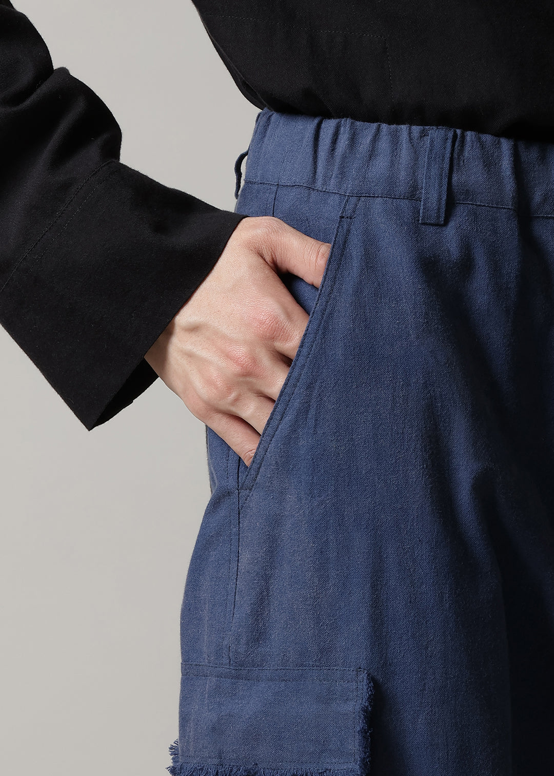 ゆったりとしたサイズ感ながら、縦のラインが際立つすっきりとしたシルエットのため、動きやすさとスタイルアップを両立。前、脇、後ろそれぞれにポケットがあるので、収納力も抜群。サイドと後ろのフラップにあしらわれたフリンジが、シンプルでありながらさりげないアクセントを添えます。