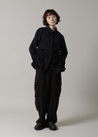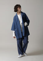 本製品は、染色された生地に洗い加工を施してから、製品として縫製し仕上げております。洗い加工は個体差が出やすく、同じ商品であっても加工の濃淡は一点一点異なります。また、一つの商品の中でも織り合う部位に使われた生地の濃淡の差が目立つ場合がございます。 素材の特性上、濃色品は、湿った状態や着用中の摩擦により、色移りすることがございます。淡い色の衣服と重ねてご着用する際にはお気を付けください。 色移りした場合は、速やかに洗濯して下さい。 |