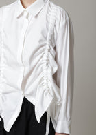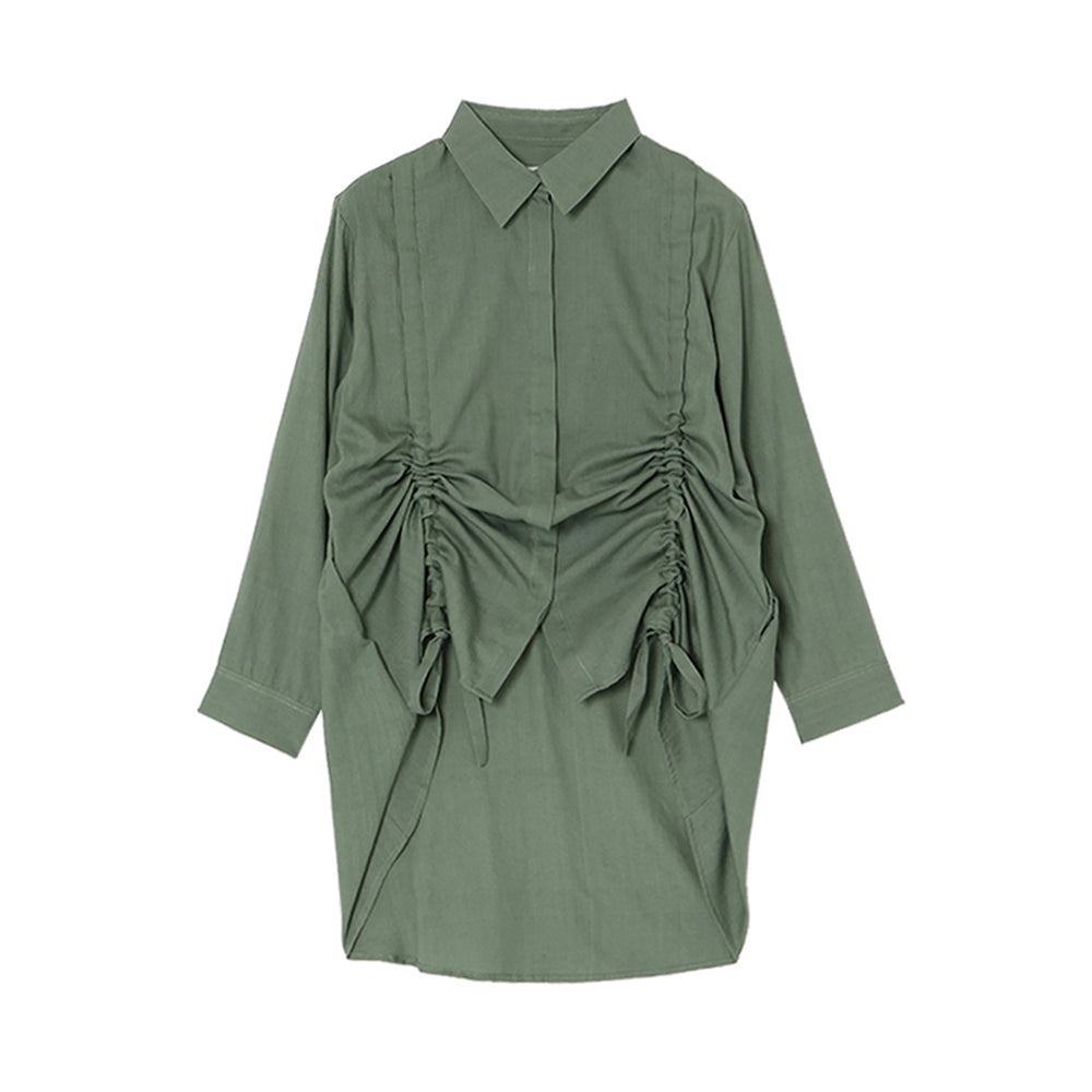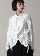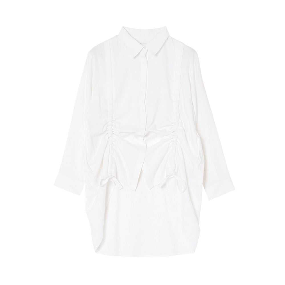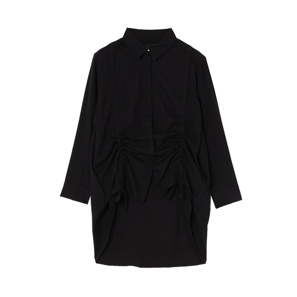 前身頃に入ったドロストリングが目を惹くデザイン。ギャザーを寄せることで軽やかな生地に立体感のあるシルエットが生まれます。