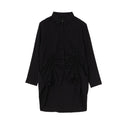 左右の寄せ具合を変えたり、あえてドロストリングを伸ばしてベーシックな着方もできるため、アレンジ次第でシルエットの変化も楽しめるのも魅力な一着です。 -