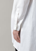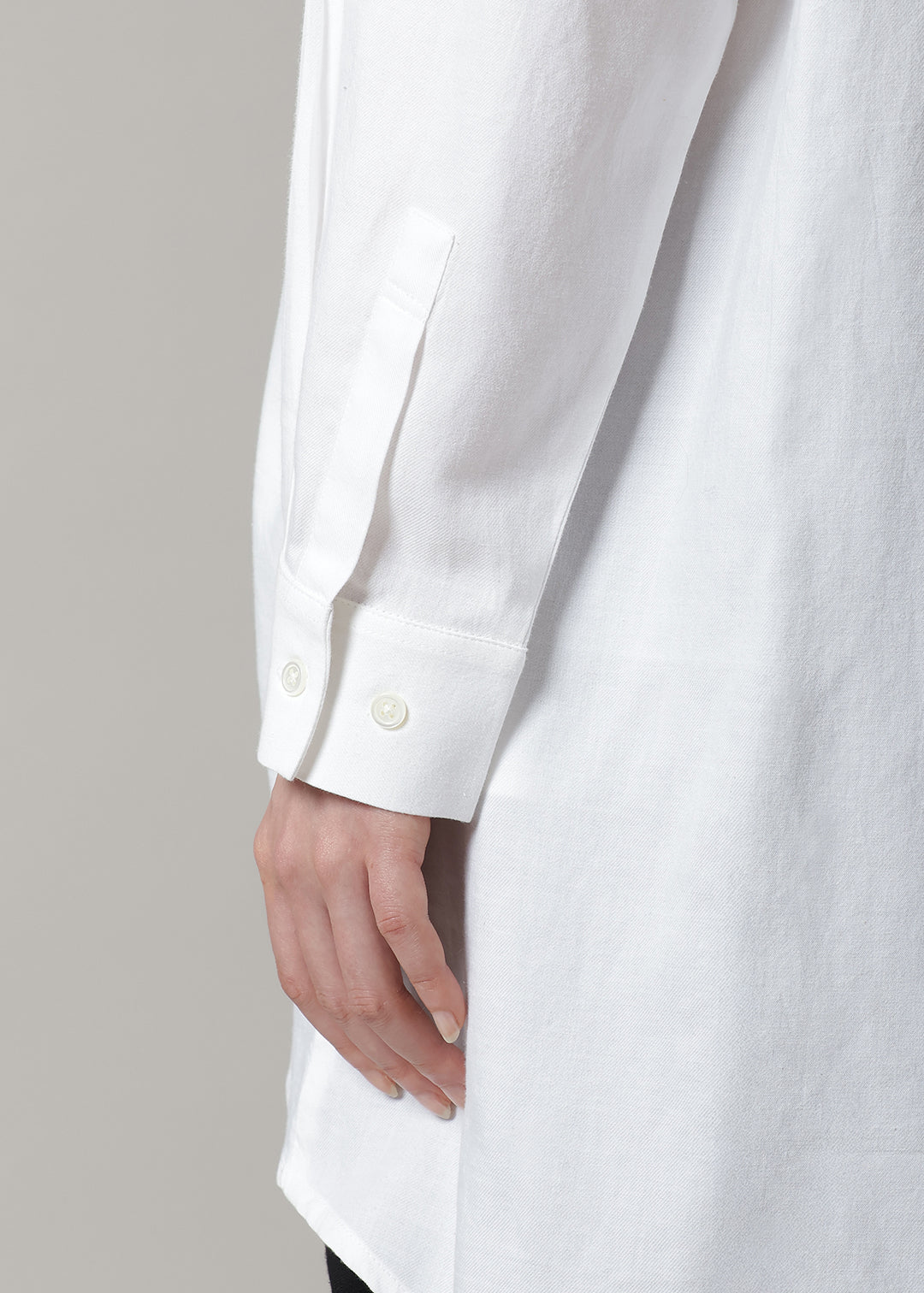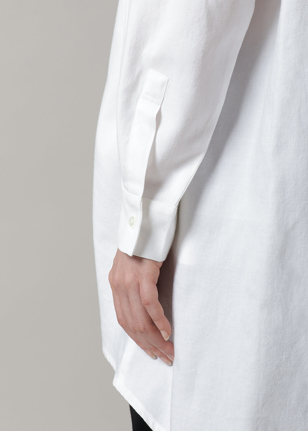インドの手紡ぎ・手織りのコットンツイル(あや織り)を使用しています。150番手の糸を2本取りした、滑らかで優しい肌ざわりが特徴です。光沢感のある上質な生地は、しっかりとした仕立てのため、長く着用いただけます。