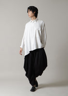 前後の生地が脇でつながったユニークなデザインは、歩くたびに美しいドレープを生み出し、存在感のあるスタイルを演出。 ウエストはゴム仕様かつ紐で調節可能のため、ストレスフリーな着用感に。