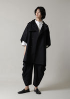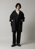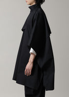 ロング丈のコートに、肩から流れるアシンメトリーなデザインが、モードな印象を添えつつ、さらりと羽織るだけで様になる一着に。身頃全体を優しく包み込むポンチョのようなシルエットでありながら、すっきりとしたラインで合わせていただけます。