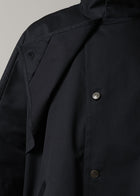 ハリ感のあるチノ素材で仕立てた、ユニセックスのコートです。