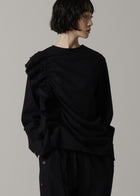 滑らかで肌触りのよいコットン生地で仕立てた、フリルデザインのユニセックストップスです。