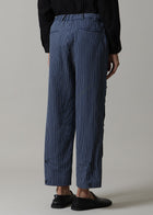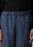 クロッシング サイドボタンパンツ リネンコットンストライプ