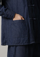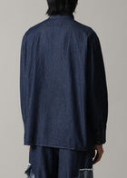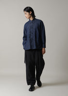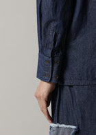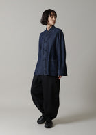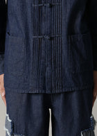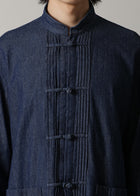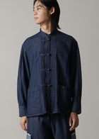 ビンテージ感のある程よい厚みのデニム生地で仕立てたユニセックスのチャイナシャツです。