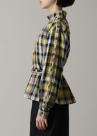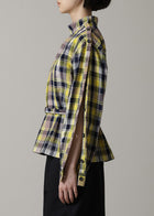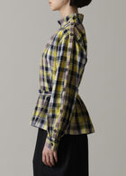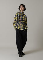 手織りならではの柔らかさが魅力の、タータンチェック生地を使用したトップスです。