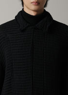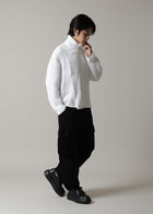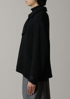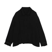 アシンメトリーのデザインと、表情豊かな生地感がさりげない個性をプラス。袖口や首元のベルト、大き目の襟など洗練されたディテールがモードな表情を生み出しています。襟元は開けたりハイネックにしたりと着こなしも自由自在。裏地がないため軽やかな着心地で、ジャケットとしてはもちろん、トップス感覚での着用も可能。