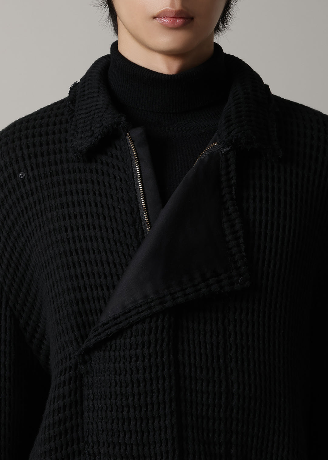 柔らかな肌触りが心地よい、ワッフル編みのガーゼ生地で仕立てたブルゾンです。