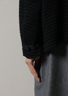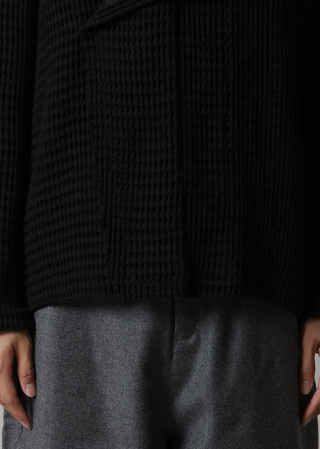 このふんわりやわらかなワッフル編みのガーゼ生地は、昨年の秋冬シーズンにもとても重宝したので、今季も新しいアイテムとしてお届けしたいと思い、再度使用することに。「今回はジャケットみたいなものにしたら面白いかも?」という発想から制作がスタートしています。