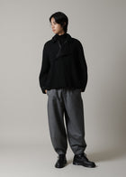 素材の特性上、着用中の摩擦などにより毛羽立ち・ピリングが生じることがございます。着用後はブラシなどで表面を整え、ピリングが目立つ際は毛玉取り器等で取り除いてください。 水洗いでは縮みやすく、風合いが固くなる恐れがあるため、ドライクリーニングをおすすめいたします。 断ち切り仕様の部分は、着用を続けることで糸が飛び出すことがあります。その際は無理に引っ張らず、はさみ等で丁寧に切り揃えてください。 |