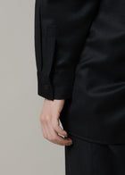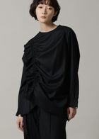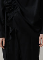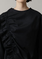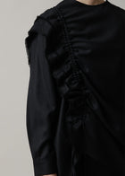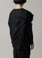 なめらかで光沢感のある、上質なウール生地で仕立てた、フリルデザインのユニセックストップスです。