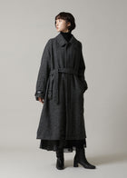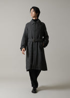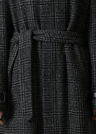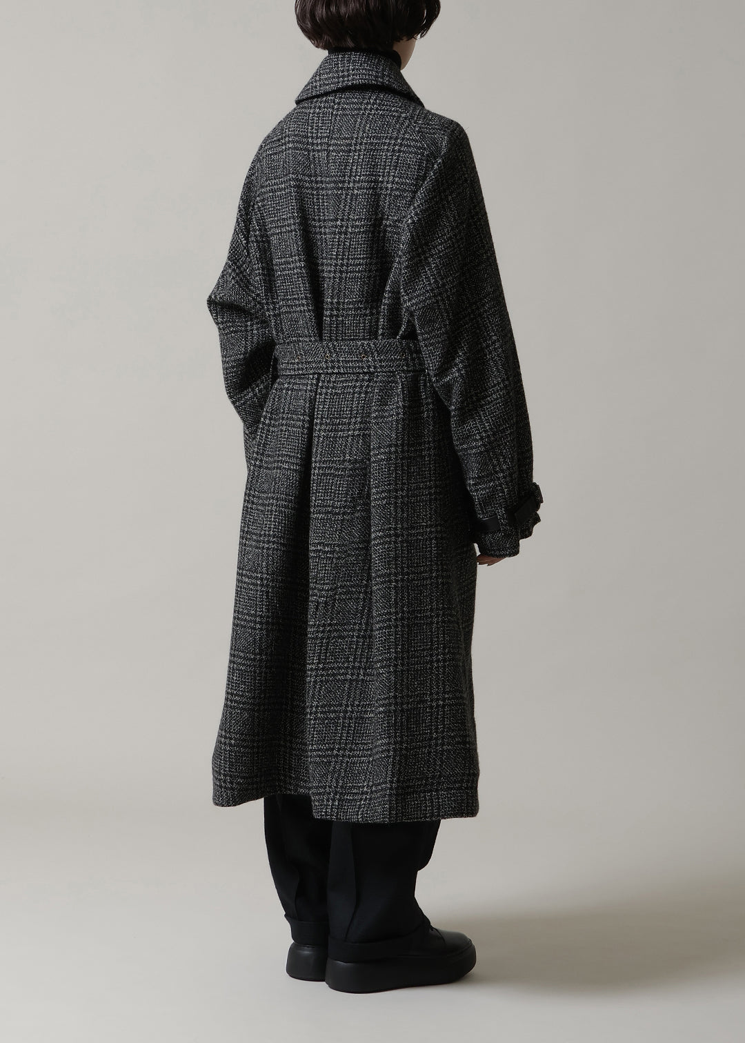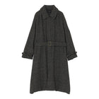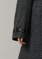 ふっくらと厚みのある、モノトーンチェックの生地で仕立てたトレンチコートです。