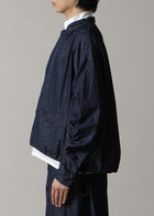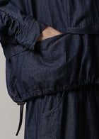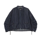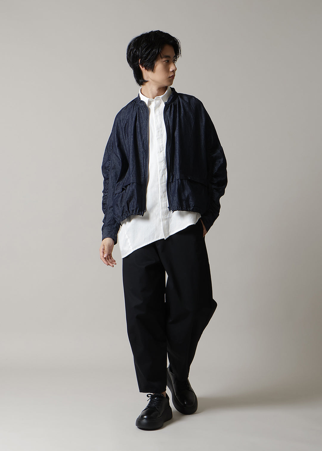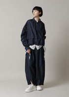 袖に施した大胆なギャザーが特徴で、ショート丈のためすっきりとした印象で合わせていただけます。身幅はゆったりしており、トップスの上からもストレスなく羽織れるリラックスした着心地も魅力。裾の紐で絞り具合を調節することができ、身頃には隠しポケットを配するなど、細部までこだわって仕立てた一着です。