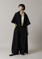 シンプルなショールカラーに、ジャストサイズで美しく着られるよう緻密に設計されたコンパクトな着丈と身幅が特徴。貝ボタンを使用するなど、細部にまでこだわって仕立てました。シャツとしてはもちろん、ショートジャケットとしても活躍する着回し力の高さも魅力です。