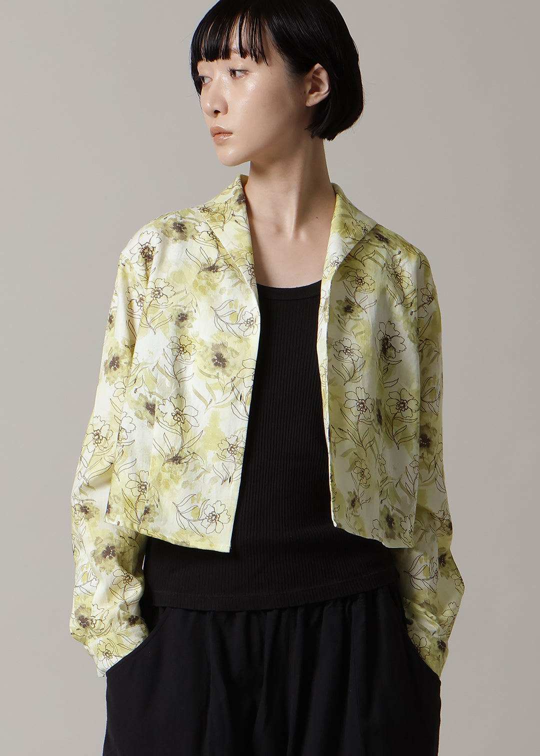 華やかなイエローのフラワープリントが目を惹く、ショート丈のシャツです。