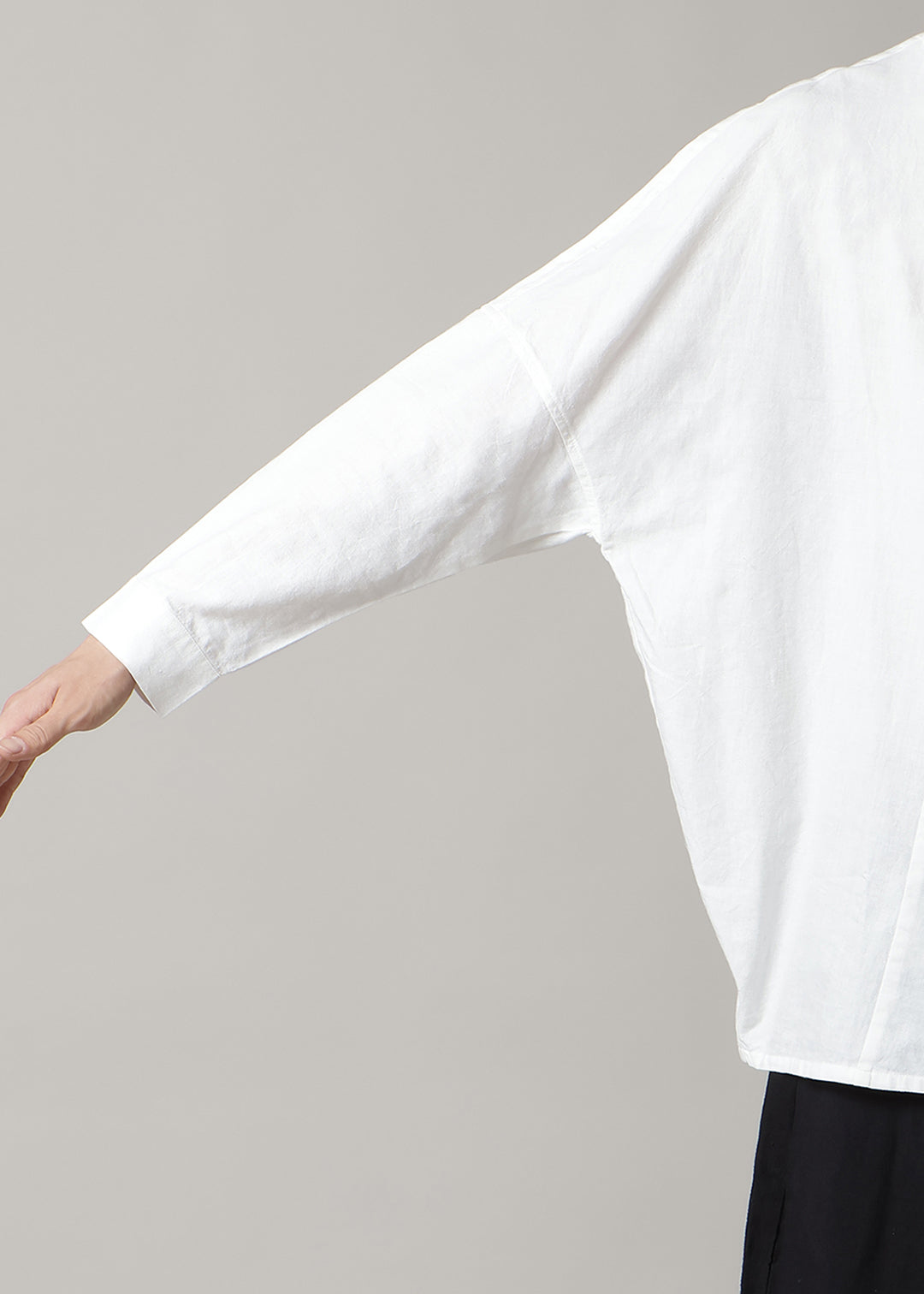 手紡ぎの100番手の糸を2本どりで織り上げた生地は、柔らかくさらりとした風合い。軽やかな着心地で、春夏も快適にご着用いただけます。