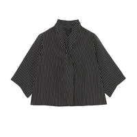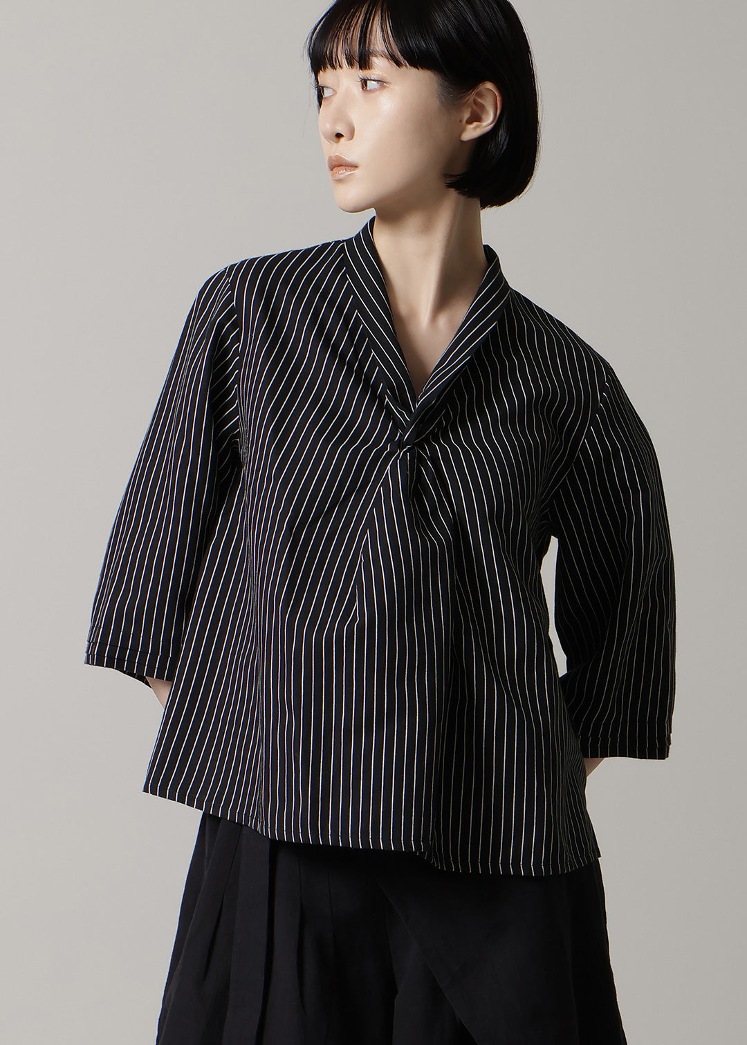 首元でクロスする襟のデザインが特徴で、顔周りにユニークで華やかなアクセントを添えます。袖に施したさりげないタックも、立体感を演出するこだわりのディテールです。 ゆったりとした身幅でリラックス感がありながら、着丈はジャストサイズに設計。どんなボトムスともバランスが取りやすく、着回し力の高さも魅力です。