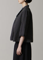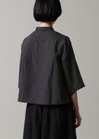 コットンとリネンの糸で織り上げた、さらりとした肌触りが心地よい機械織りの生地です。ストライプ柄は単色の生地の上からプリントで表現することで柄の境界線がくっきりと際立ち、洗練された印象を与えます。程よいハリ感のある、やや薄手の生地感のため、幅広いシーズンでお使いいただけます。
