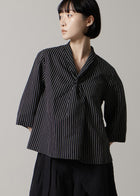 スカルプテッド ツイストネックトップス リネンコットンストライプ