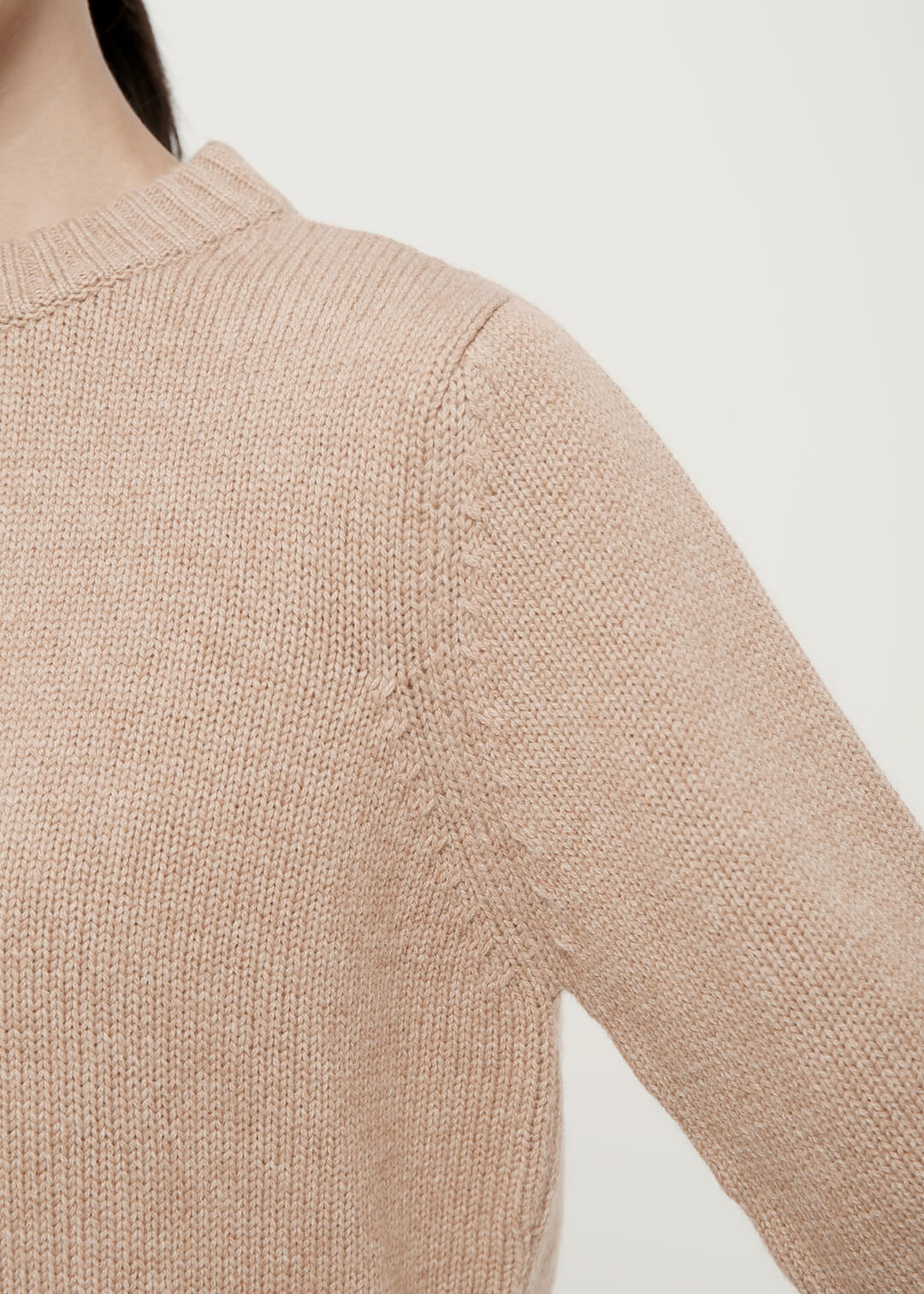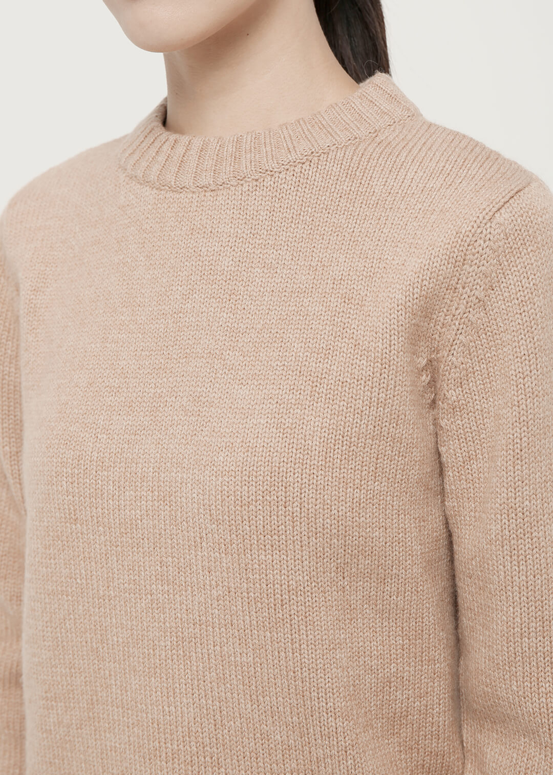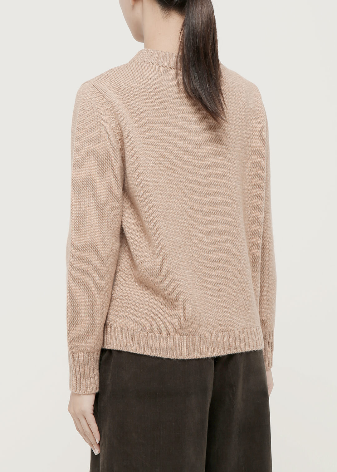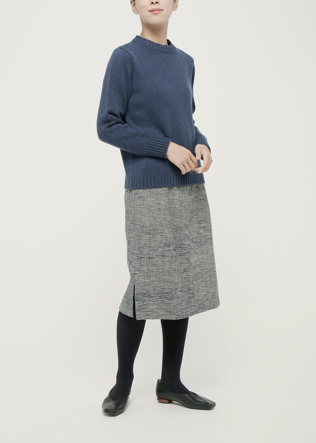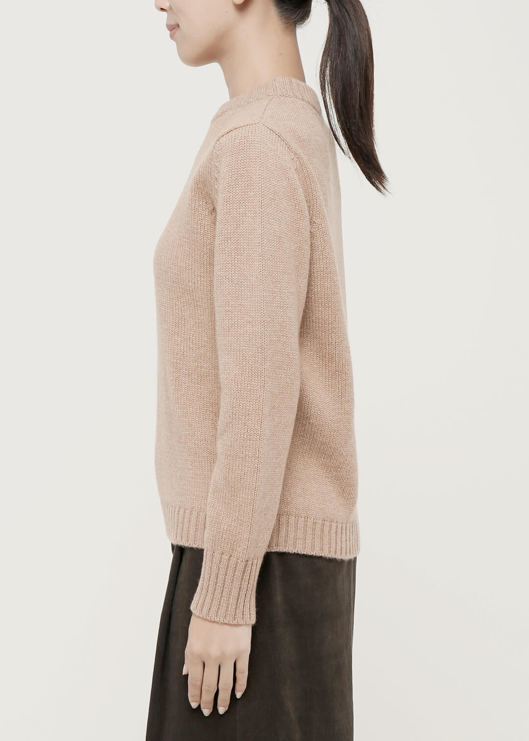ナチュラルな風合いのウールカシミヤで編み上げたUネックニットです。ローゲージで太さと厚みがあるカシミヤ混ウールは保温性に優れ、寒い日もやさしく包み込みます。合わせるボトムを選ばないデザインで着回しやすいアイテムです。首元に沿うネックラインが上品な印象を与え、ベーシックな型ながら飽きがこない1枚に仕上げました。やわらかな着心地で窮屈感なく着用できます。