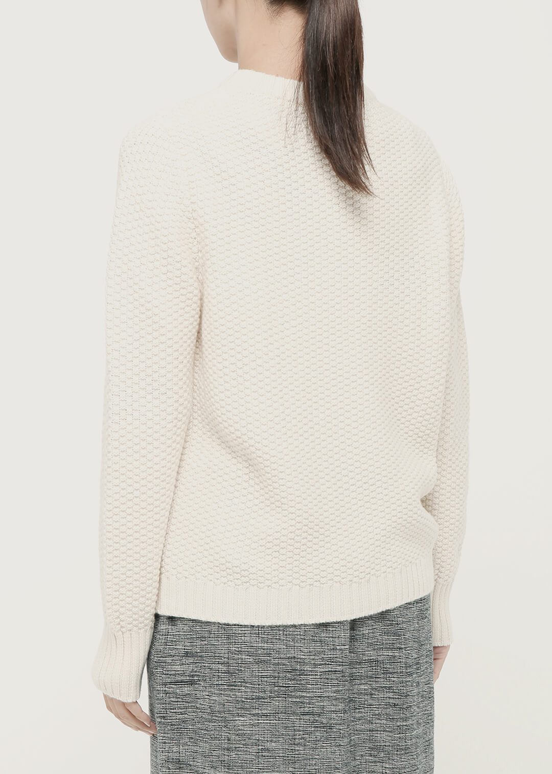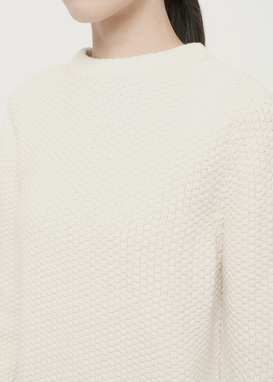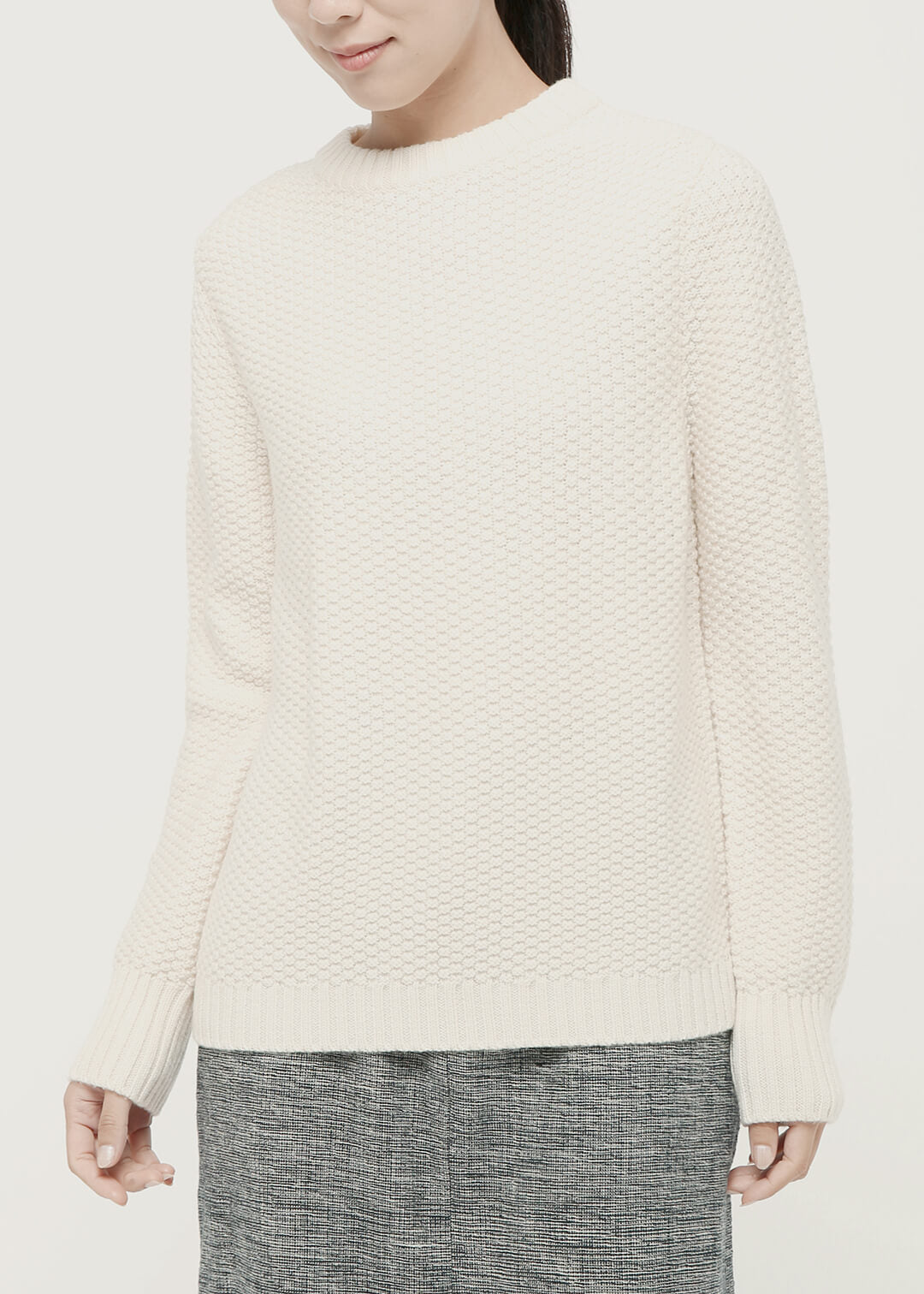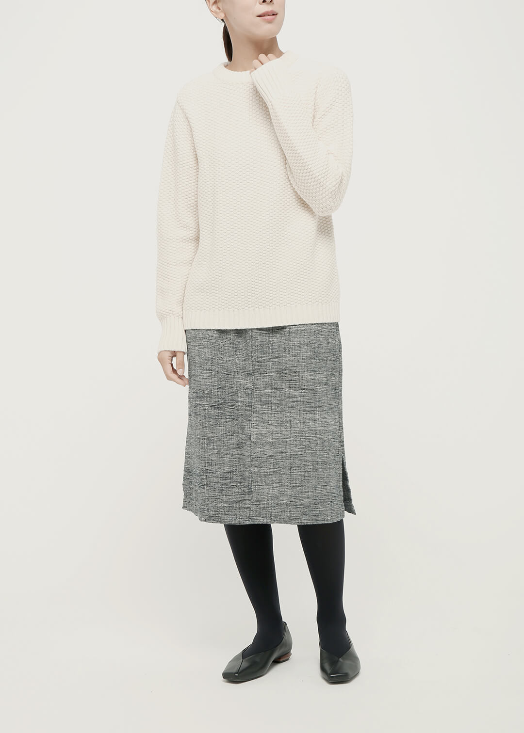 ナチュラルな風合いのウールで編み上げたUネックニットです。ローゲージで太さと厚みがあるウールは保温性に優れ、寒い日もやさしく包み込んでくれるアイテム。ベーシックな型ながら、立体感のある織り模様がアクセントを添える一枚に仕上げました。ホワイト以外はいずれも2色の糸を編み合わせており、表情豊かなニュアンスカラーをお楽しみいただけます。