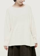 程よい厚みの、優しい肌触りが特徴的なニットです。ゆったりとしたサイズでありながら、ボートネックのデザインが全体をすっきりとした印象に。細かく編まれたニット生地は落ち着いた印象があり、上品に着こなしていただけます。ベーシックなデザインと色合いはパンツスタイルやスカートスタイルなど、様々なコーディネートで着まわしできるのも嬉しいポイント。秋口から春先まで、ロングシーズン活躍してくれるアイテムです。