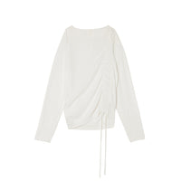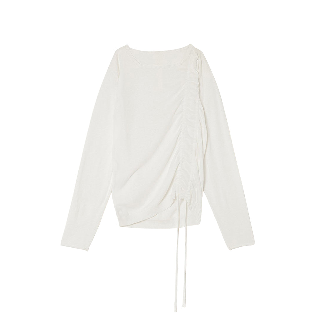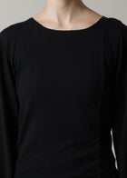 肌にやさしく寄り添う、やわらかなコットン糸で仕立てたギャザーデザインのトップスです。