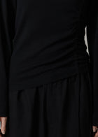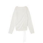 身頃に施されたギャザーが、シンプルなシルエットに華やかさを添える、存在感のある一着。ギャザー部分は紐で調整が可能で、たっぷり寄せれば立体感が際立ちフェミニンな印象に、控えめに寄せることで落ち着きのある大人の雰囲気もお楽しみいただけます。