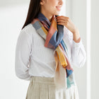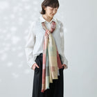経糸・緯糸両方に多くの色を使用するブロックチェックは、 機械織でありながら手織り並みに手間ひまをかけて出来上がるストールです。