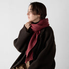 2色の糸を撚り合わせた美しいメランジ調の織模様。万能なシンプルデザインは秋冬の落ち着いた装いにシックな彩りを添え、お顔まわりも明るく見せてくれます。ふんわり軽い巻き心地と、すっきり巻けるカシミヤのように滑らかな生地感も人気のポイント。
