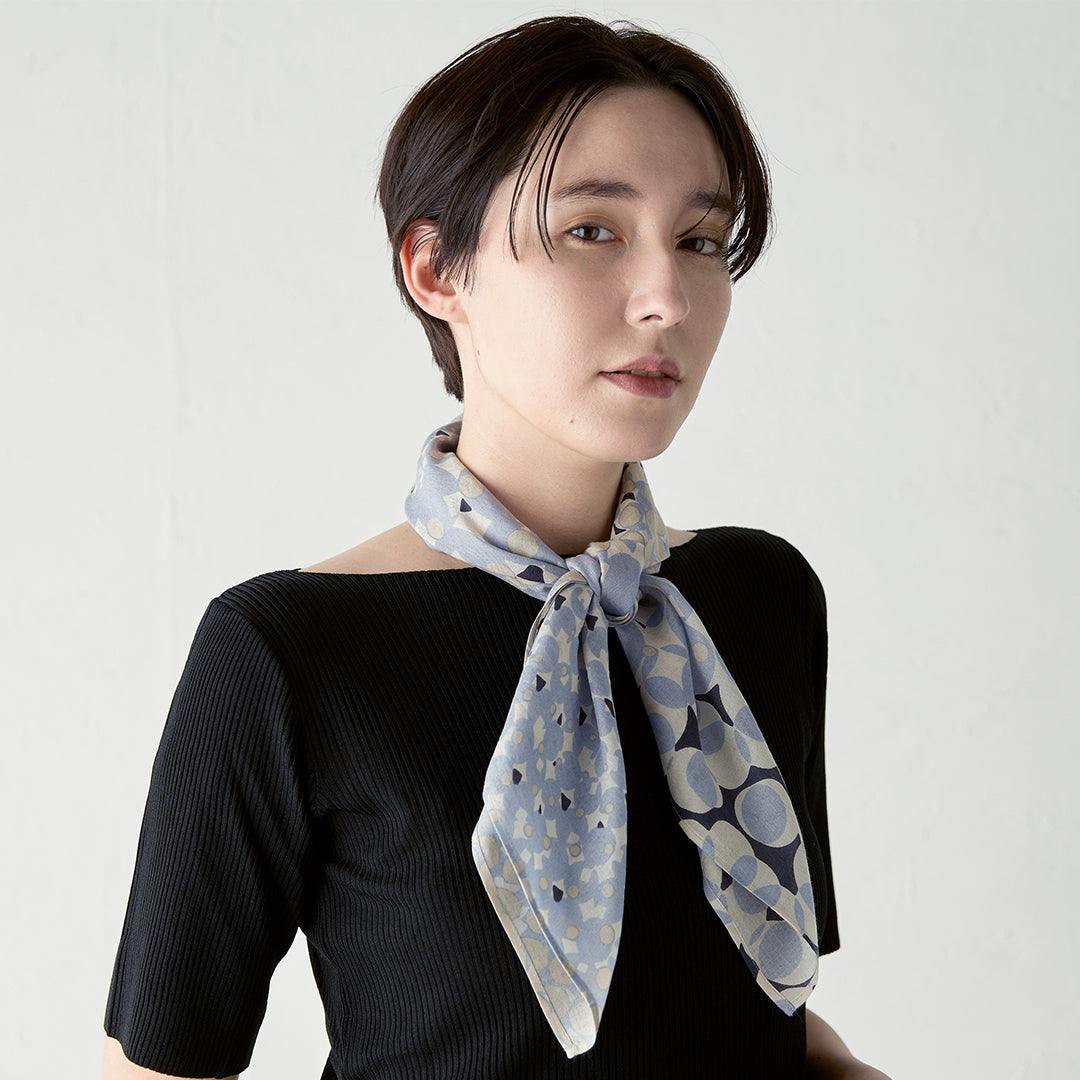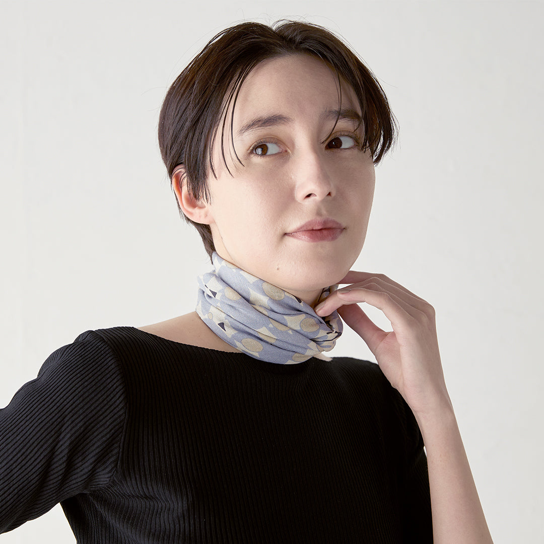 ふわふわ空から舞い降りる白い雪。 梢にそっと降り積もり、春の陽の光をうけて輝く美しい冬の情景をスカーフにしました。 「手捺染」というスクリーンプリントで淡い色を丁寧に重ね、降りゆくやわらかな雪を表現しています。